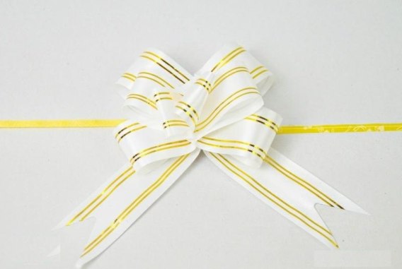 Wstążka ściągana 3x50 cm biała ze złotymi paskami 10szt. | Wst-0011
