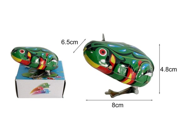 Nakręcana na kluczyk - wystarczy kilka obrotów, aby żabka zaczęła skakać i poruszać się na sprężynce, zapewniając mnóstwo radości i zabawy.