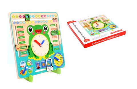 Zabawka drewniana edukacyjna żabka - dni,miesiące,godziny,pory roku,pogoda 30x30x0,8 cm NT3665