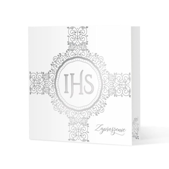 Zaproszenie na komunię biało-srebrne 10szt. 132609
