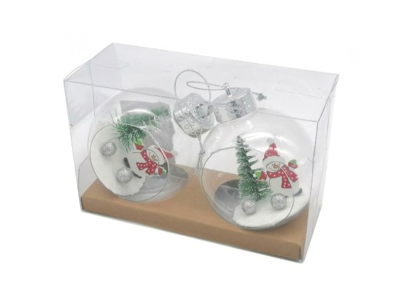 Zawieszka kula otwarta z bałwankiem i choinką 2szt.