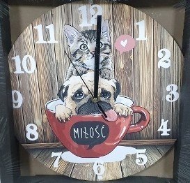 Zegar ścienny 30cm kot/pies MIŁOŚĆ