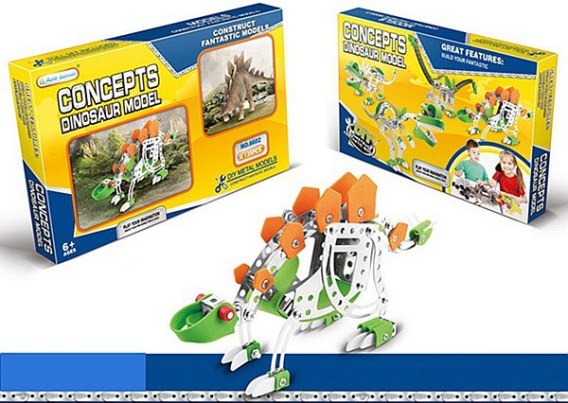 Zestaw 125 metalowych klocków do skręcania - dinozaur; 31,5x20x4cm