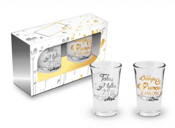 Zestaw 2 kieliszków Junior35ml - Oddaję Ci serce z miłości/Tobą tylko żyję