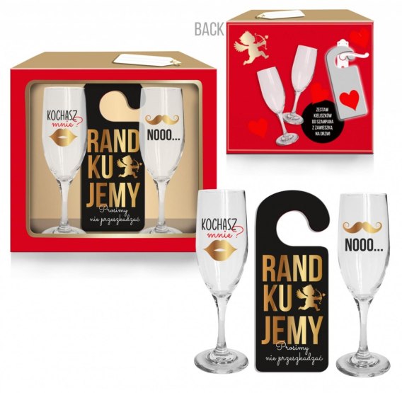 Zestaw 2 kieliszków do szampana z zawieszką randkujemy