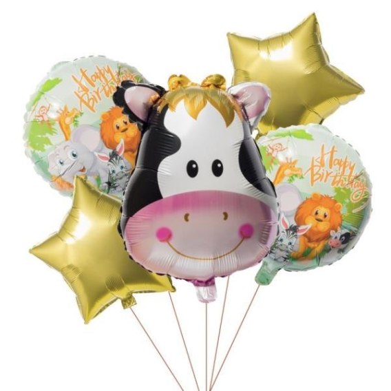 Zestaw balonów foliowych 5szt. KROWA GWIAZDKA MIX |BCF-536