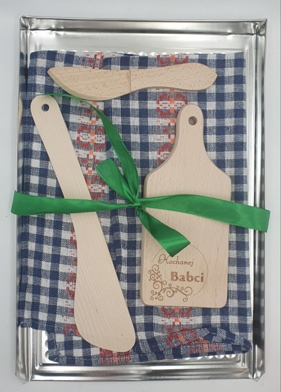 Zestaw dla babci - blacha do ciasta,deska do krojenia,nożyk,ściereczka,łopatka