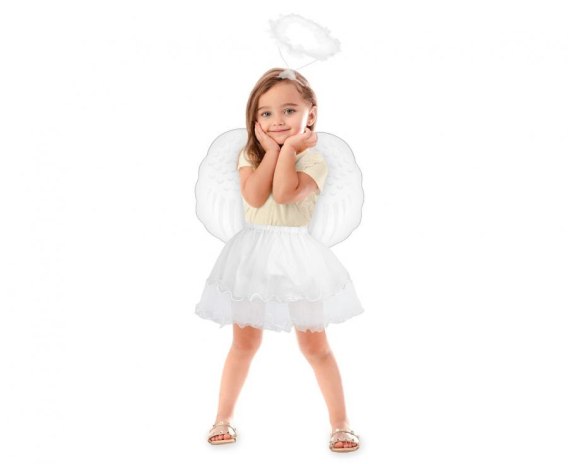 Zestaw dla dzieci "Aniołek" (spódniczka z obszyciem, skrzydła, aureolka) NP-ANI1