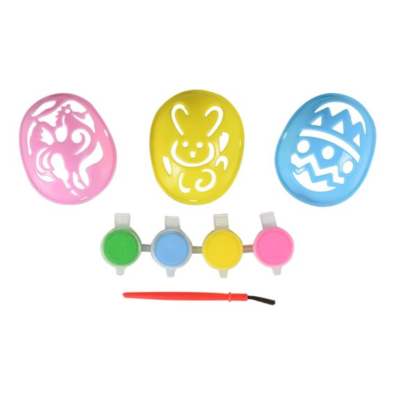Szablony z farbkami i pędzelkiem do dekoracji jajek. Idealne do dekorowania wielkanocnych jajek razem z dzieckiem.