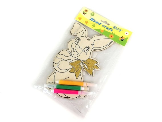 Zestaw zawieszka drewniana królik z flamastrami 10 x 17cm